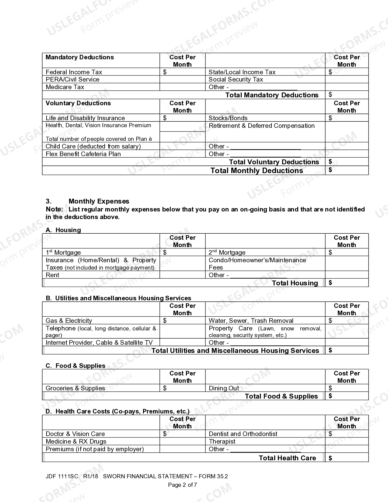 Form Jdf1111sc 35 2 Download Printable Pdf Or Fill Online Sworn Financial Statement Colorado Templateroller